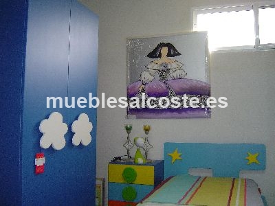 DORMITORIO JUVENIL AGATHA RUIZ DE LA PRADA, ARMARIO DOS PUERTA LACADO AZUL CON POMO NUBE, MESILLA 3C, CAMA 90 CON RUEDAS, CON DOS CAJONES BAJO LA CAMA.